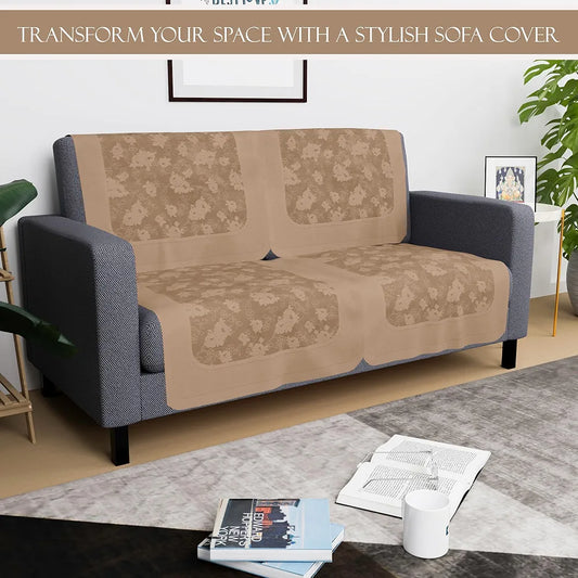 Kuber Industries Set of 4 Net Durable 2 Seater Sofa Covers for Living Room Self Net Hawaii Camel Brown