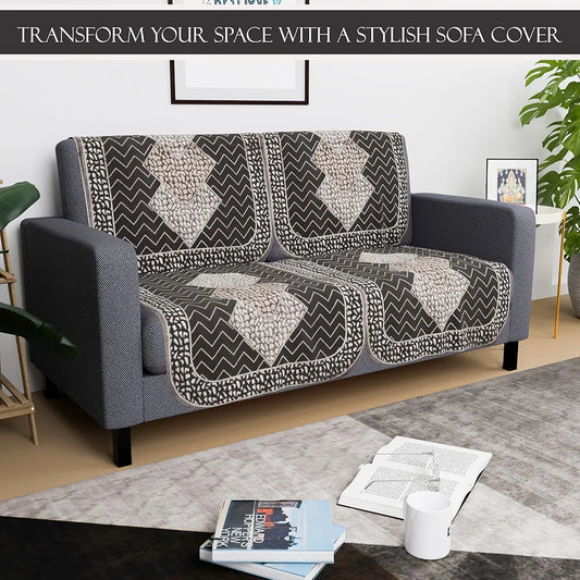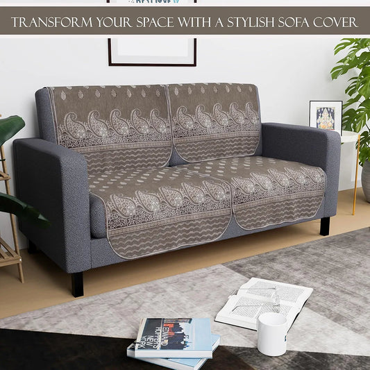 Kuber Industries Set of 4 Durable 2 Seater Sofa Covers for Living Room Stone Mayur Dark Grey & Brown