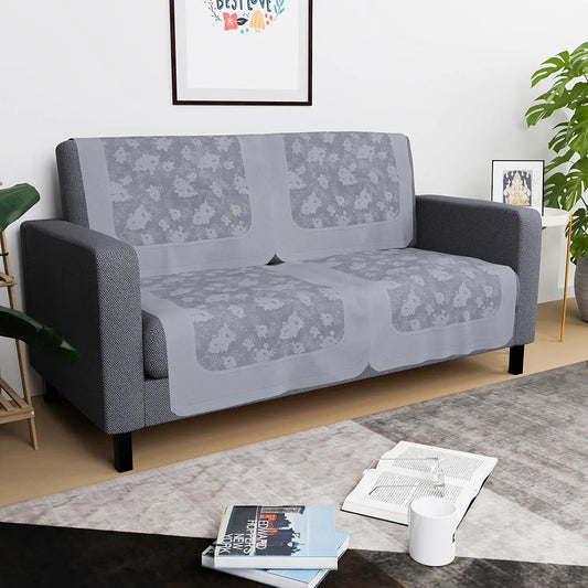 Kuber Industries Set of 4 Net Durable 2 Seater Sofa Covers for Living Room Self Net Hawaii Grey