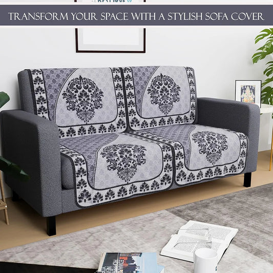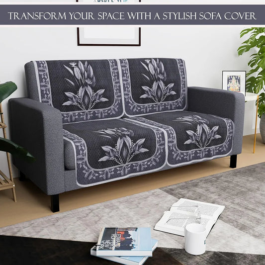 Kuber Industries Set of 4 Net Durable 2 Seater Sofa Covers Floral Print Black & Grey