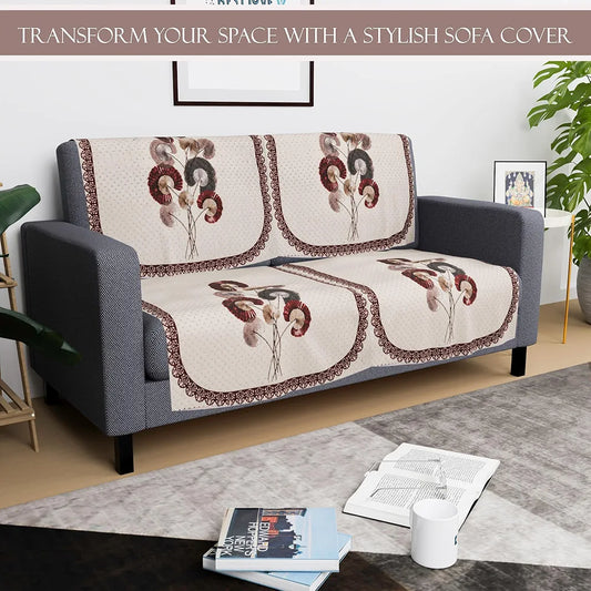 Kuber Industries Set of 4 Velvet 2 Seater Sofa Covers for Living Room Digital Flower-Cream & Brown