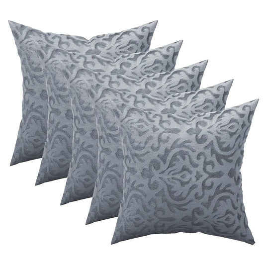 Kuber Industries Set of 5 Washable & Removable Velvet Sofa Pillow Covers with Zip Floral Design Grey