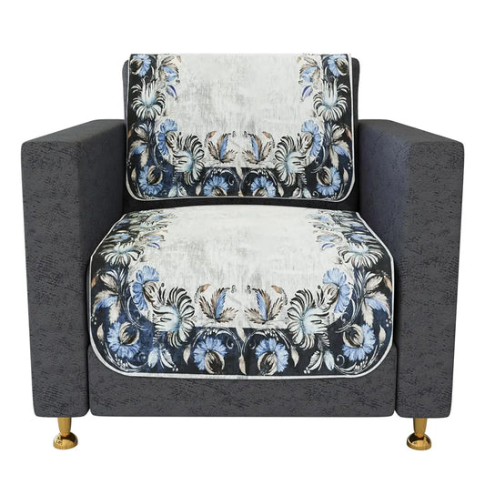 Kuber Industries Sofa Cover Set Blue Digital Flower Sofa Cover 5 Seater Couch Cover Gray