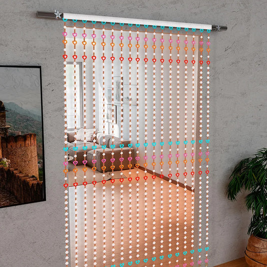 Kuber Industries String Door Curtain Fancy Sparkling String Beads Sheer Curtains Heart Angora Curtains Multi
