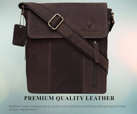 Leather 11 inch Sling Messenger Bag for Men I Multipurpose Crossbody Bag I Travel Bag with Adjustable Strap | Hunter