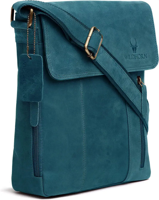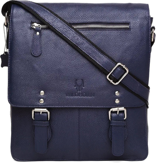 Leather 11 inch Sling Messenger Bag for Men I Multipurpose Crossbody Bag I Travel Bag with Adjustable Strap | Blue Hunter