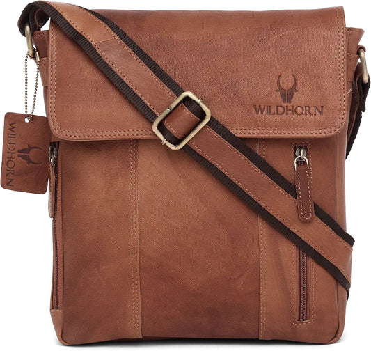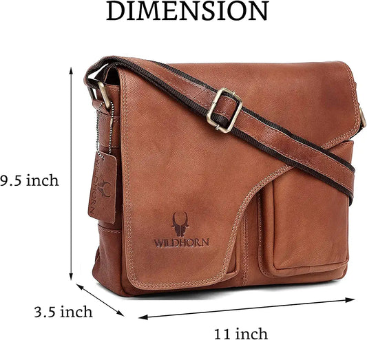 Leather 11 inch Sling Messenger Bag for Men I Multipurpose Crossbody Bag I Travel Bag with Adjustable Strap | Tan
