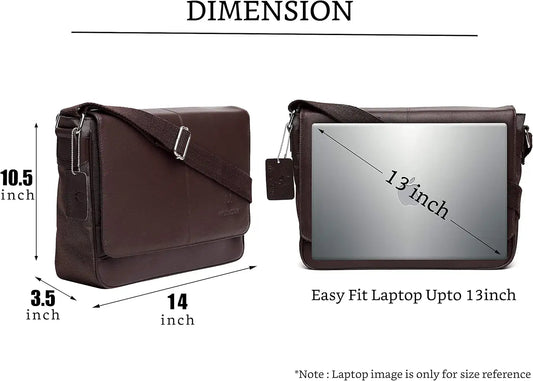 Leather 13 inch Laptop Messenger Bag for Men I Padded Laptop Compartment I Adjustable Strap | Brown Colour