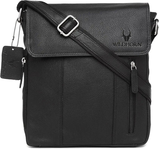 Leather 11 inch Sling Messenger Bag for Men I Multipurpose Crossbody Bag I Travel Bag with Adjustable Strap | Black