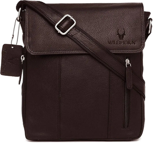 Leather 11 inch Sling Messenger Bag for Men I Multipurpose Crossbody Bag I Travel Bag with Adjustable Strap | Brown