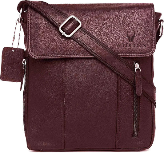 Leather 11 inch Sling Messenger Bag for Men I Multipurpose Crossbody Bag I Travel Bag with Adjustable Strap | Maroon