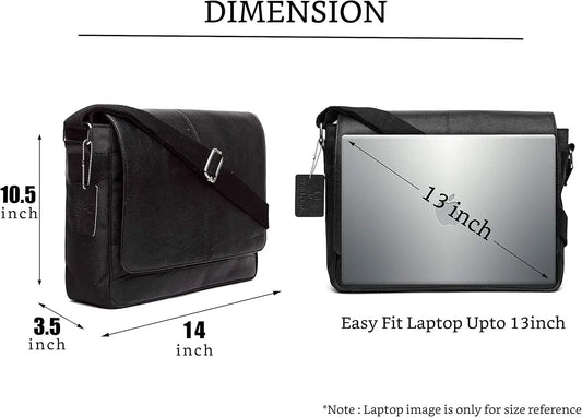 Leather 13 inch Laptop Messenger Bag for Men I Padded Laptop Compartment I Adjustable Strap | Black Colour