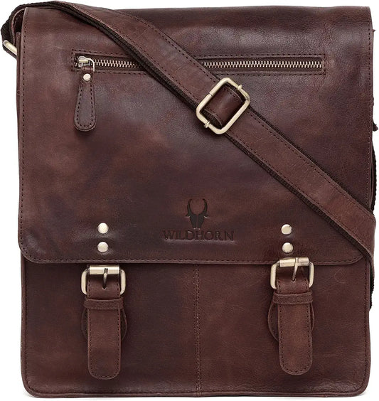 Leather 11.5 inch Messenger Bag for Men I Multipurpose Bag I Office Bag I Travel Bag with Adjustable Strap | Brown