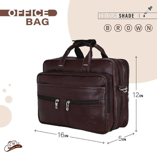 Leather Expandable PU 15.6 inch Laptop Office Bag Men Women Messenger Briefcase | Brown Colour