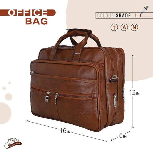 Leather Expandable PU 15.6 inch Laptop Office Bag Men Women Messenger Briefcase | Tan Colour