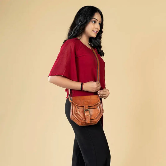 Leather Casual Sling Bag for Girls and Women | Tan-1