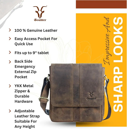 Leather Faster 9.5 Inch Messenger Bag For Men And Women | Brown