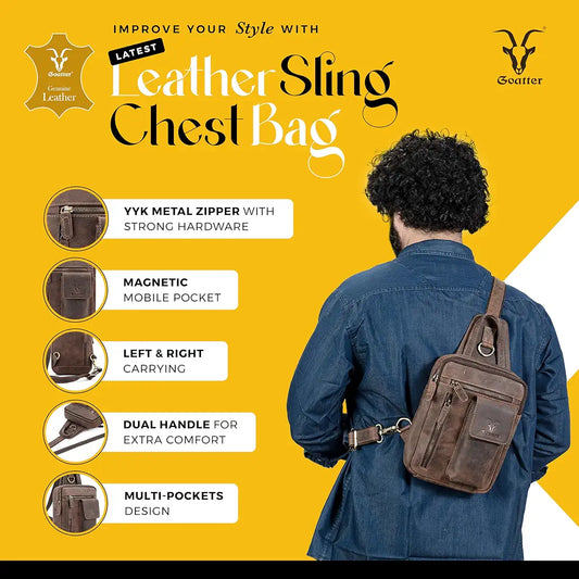 Leather Chest Crossbody Sling Backpack Bag Travel Bike Gym Daypack for Men And Women