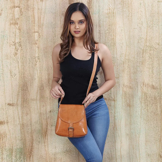 Leather Crossbody Sling Bag For Women's | Merigold Tan