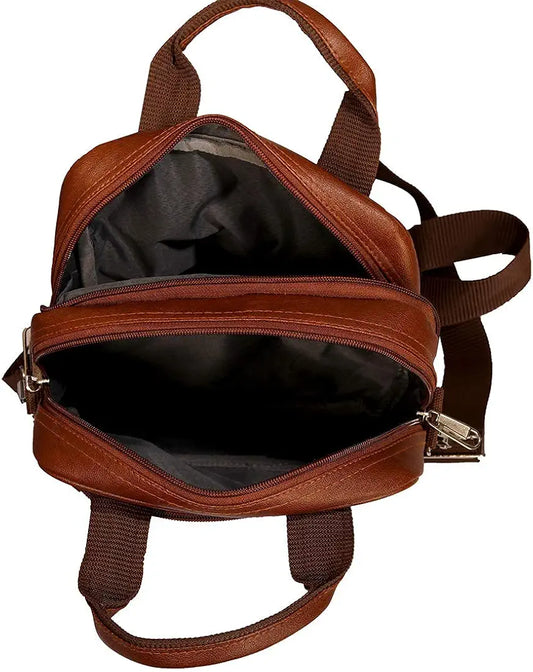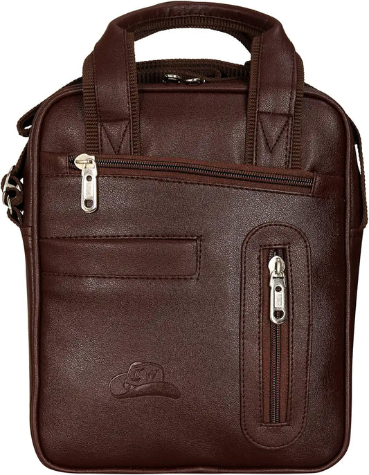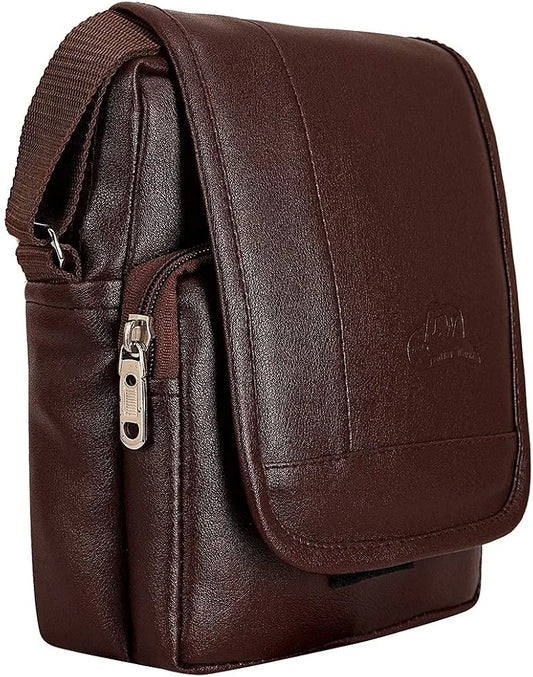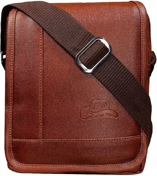 Leather Pu Leather Brown Messenger Cross Sling Bag Body Travel Office One Side Chest Shoulder For Men & Women | Brown