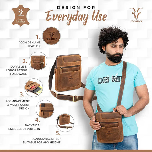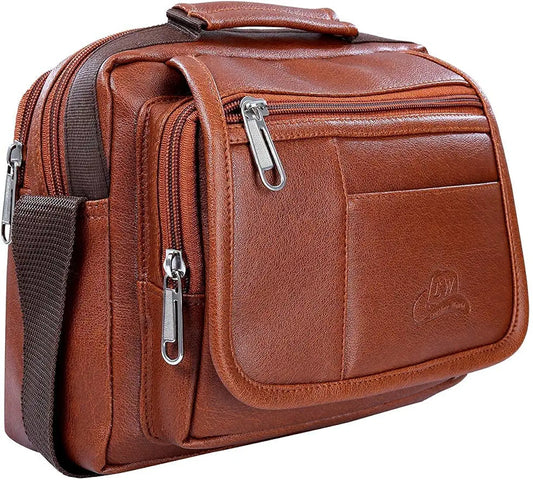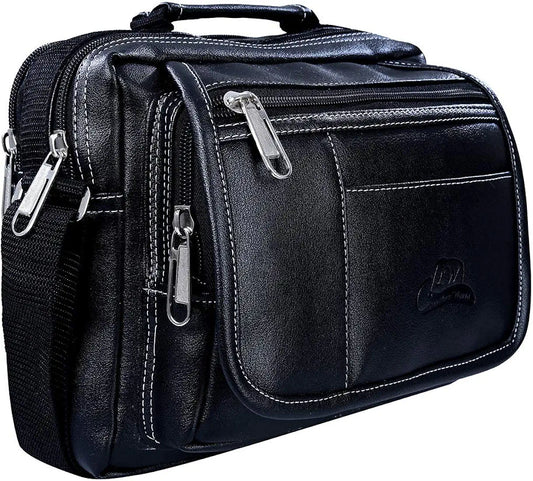 Leather Slim Design Multi Pocket 11" Inch Messenger Sling Bag For Men