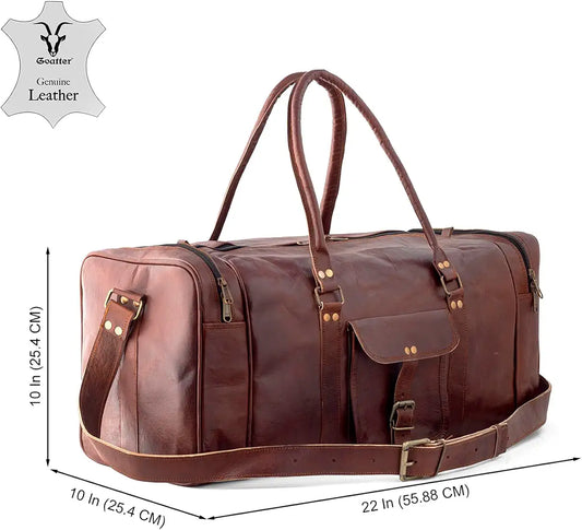 Leather Multi Pockets Travel 22" Inch Duffle Bag for Men Large Size
