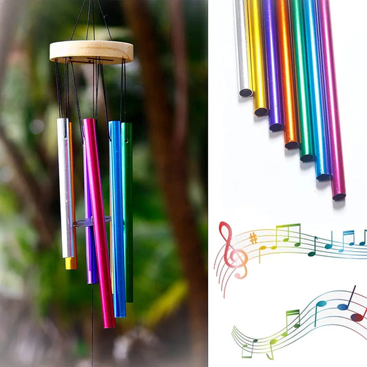 Lilone Wood Aluminum 7 Pipe Silver Wind Chimes Sweet Sound 24 Inch Long