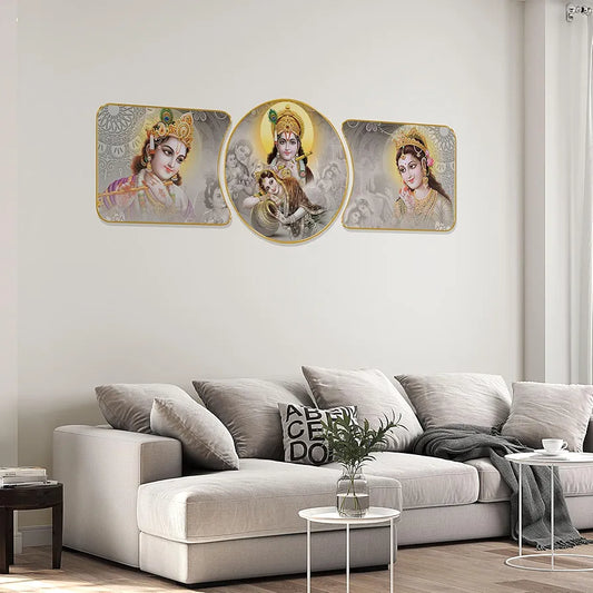 Livin'luxe Paintings Radha Krishna Divine Love Wall Painting with Frame - Sparkle Glossy Round Golden Framed Large