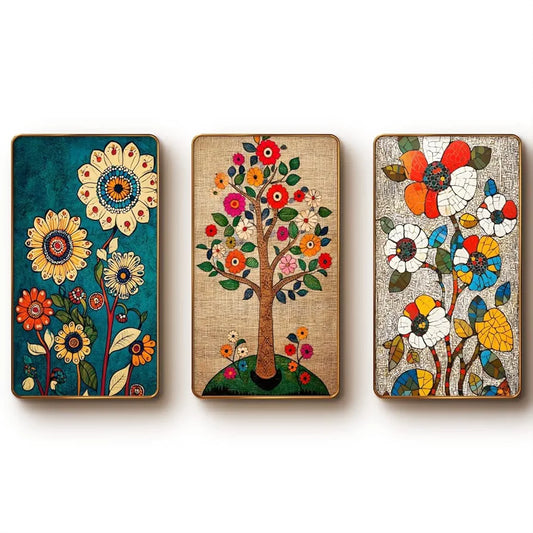 Livin'luxe Set of 3 Modern Art Madhubani Painting Premium Golden Framed Wall Paintings SG19