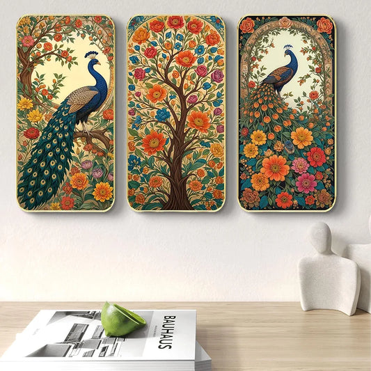 Livin'luxe Set of 3 Peacock Modern Art Boho Painting Premium Framed Laminated Wall Paintings SP-20