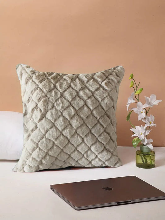 Luxe Home Cushion Cover Duble Side Rabbit Fur Diamond Design Covers Set of 2 Colour Beige