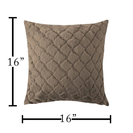Luxe Home Cushion Cover Duble Side Rabbit Fur Diamond Design Covers Set of 2 Colour Taupe