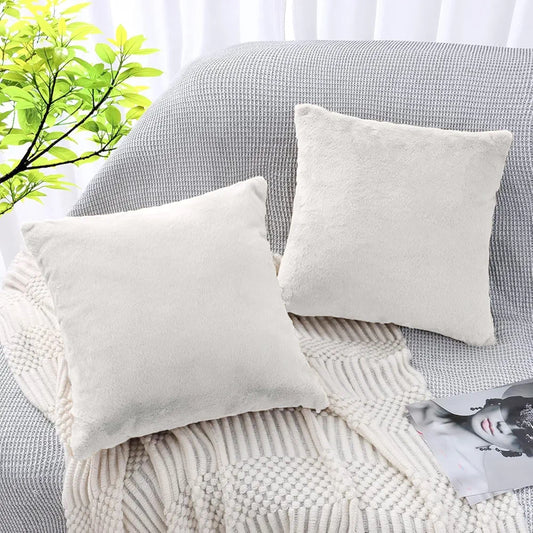 Luxe Home Cushion Cover Duble Side Rabbit Fur Plain Design Covers Set of 2 Colour White