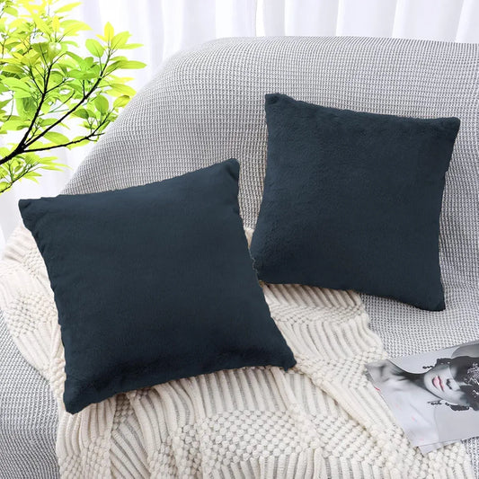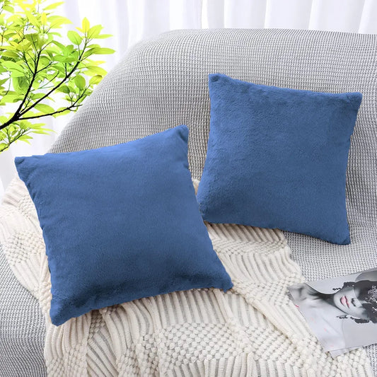Luxe Home Cushion Cover Duble Side Rabbit Fur Plain Design Covers Set of 2 for Sofa Colour Blue