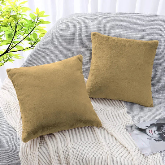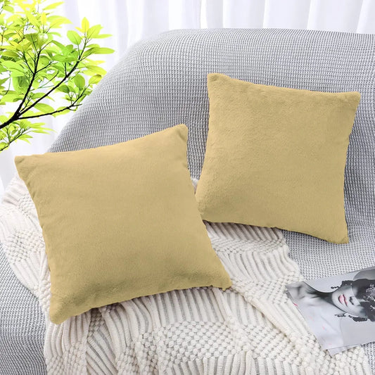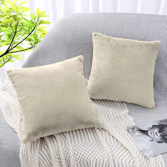 Luxe Home Cushion Cover Duble Side Rabbit Fur Plain Design Covers Set of 2 for Sofa BedColour Beige