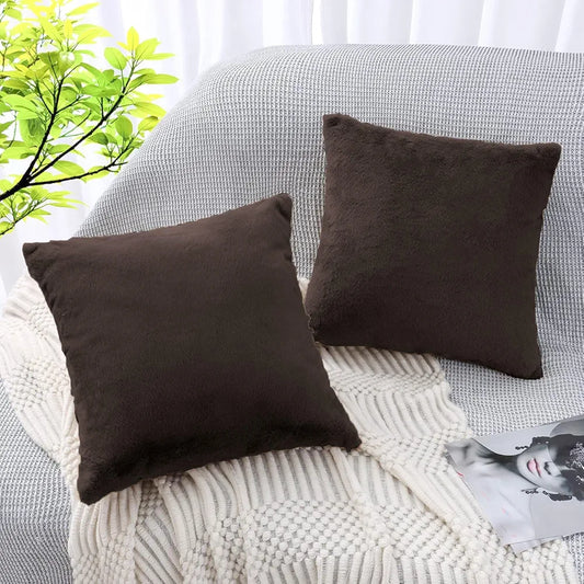 Luxe Home Cushion Cover Duble Side Rabbit Fur Plain Design Covers Set of 2 for Sofa Colour Chocolate