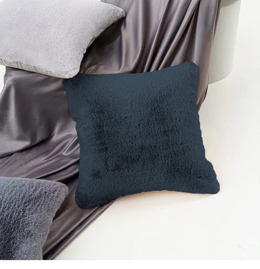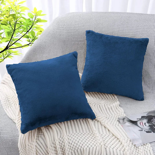 Luxe Home Cushion Cover One Side Rabbit Fur Plain Design Covers Set of 2 Colour Blue