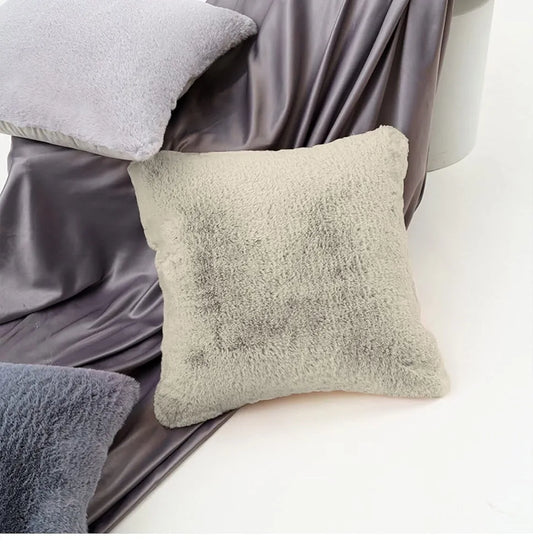 Luxe Home Cushion Cover Duble Side Rabbit Fur Plain Design Covers Set of 2 for Sofa Colour Seige