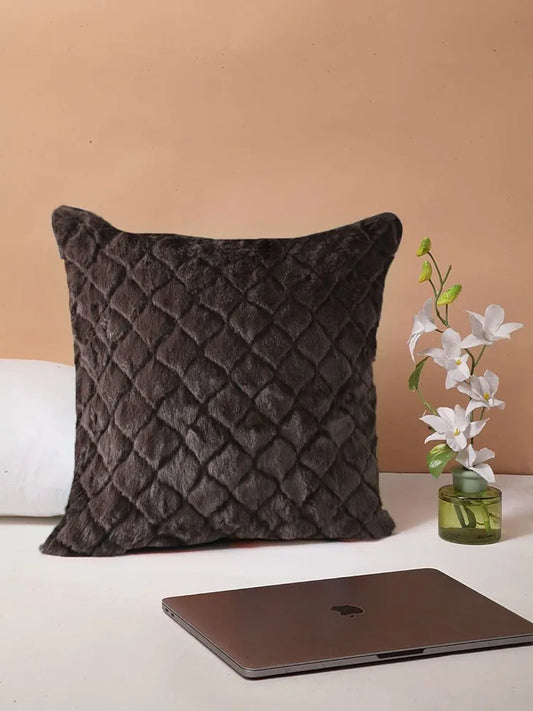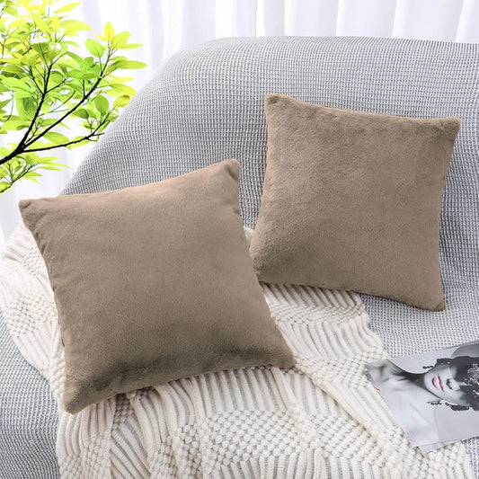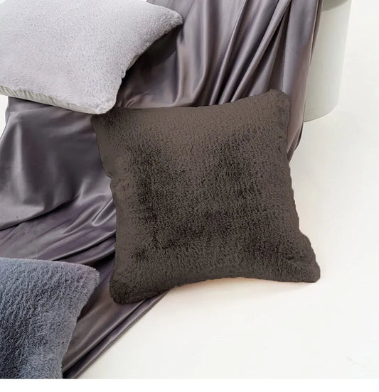 Luxe Home Cushion Cover One Side Rabbit Fur Plain Design Covers Set of 2 Colour Cocoa