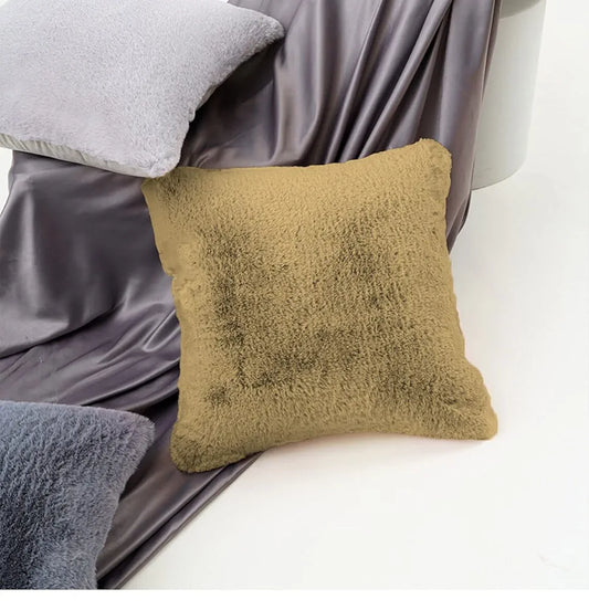 Luxe Home Cushion Cover One Side Rabbit Fur Plain Design Covers Set of 2 Colour Anti Gold