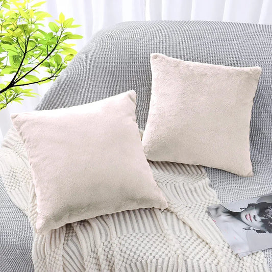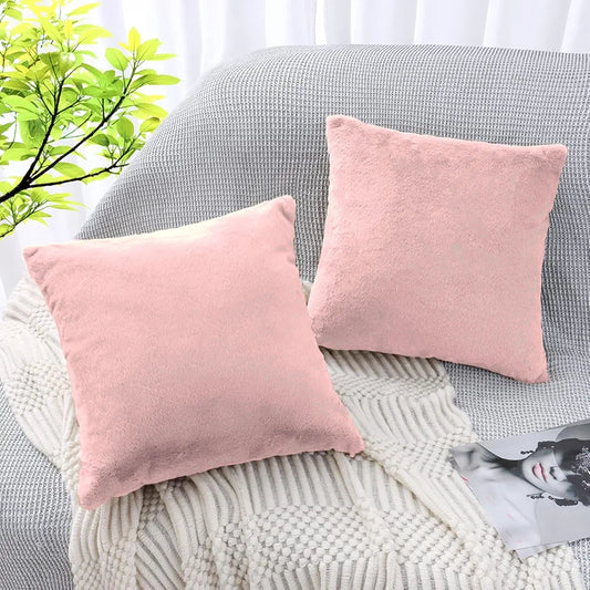 Luxe Home Cushion Cover Duble Side Rabbit Fur Plain Design Covers Set of 2 for Sofa Colour Skin