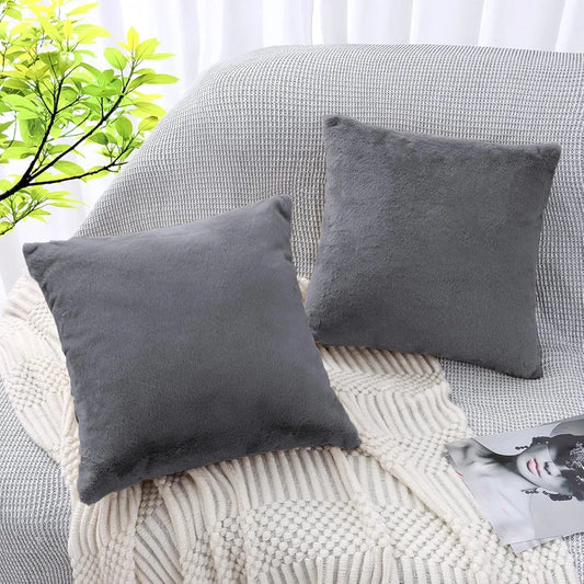 Luxe Home Cushion Cover Duble Side Rabbit Fur Plain Design Covers Set of 2 for Sofa Colour Grey