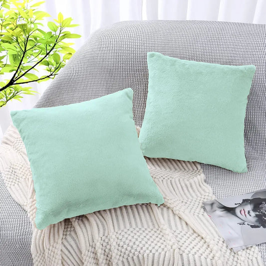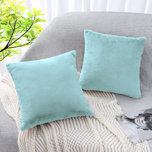 Luxe Home Cushion Cover Duble Side Rabbit Fur Plain Design Covers Set of 2 for Sofa Colour Turquish