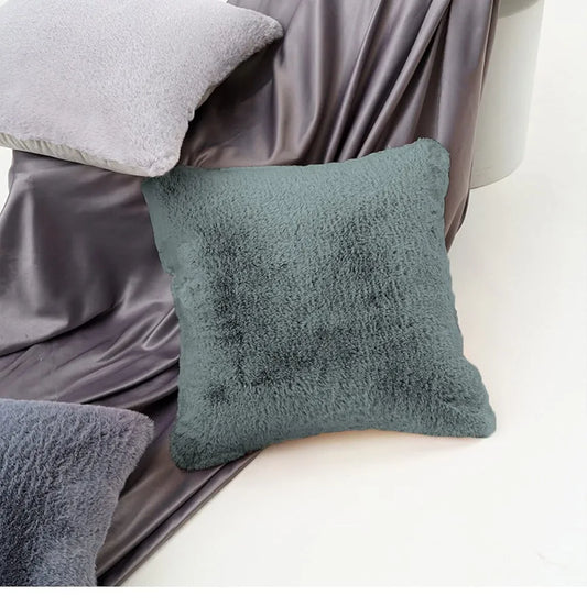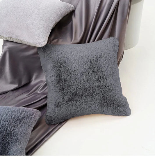 Luxe Home Cushion Cover One Side Rabbit Fur Plain Design Covers Set of 2 Colour Grey