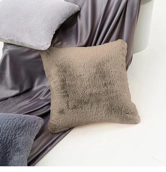 Luxe Home Cushion Cover One Side Rabbit Fur Plain Design Covers Set of 2 Colour Seige