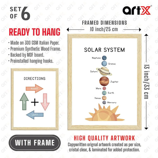 ArtX Paper Educational-02 Solar System Weather Directions Seasons Framed Wall Posters Set of 6