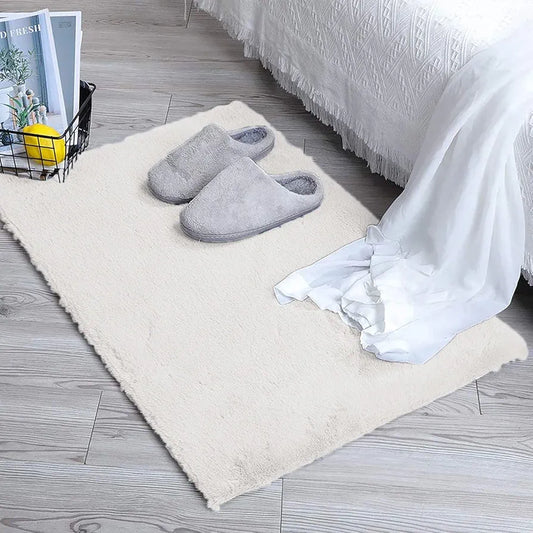 Luxe Home International Ruffle Bath Mat Rabbit Fur 1000 GSM Bathroom Door Rectangular Foot Mats 45X75 Cm Colour White