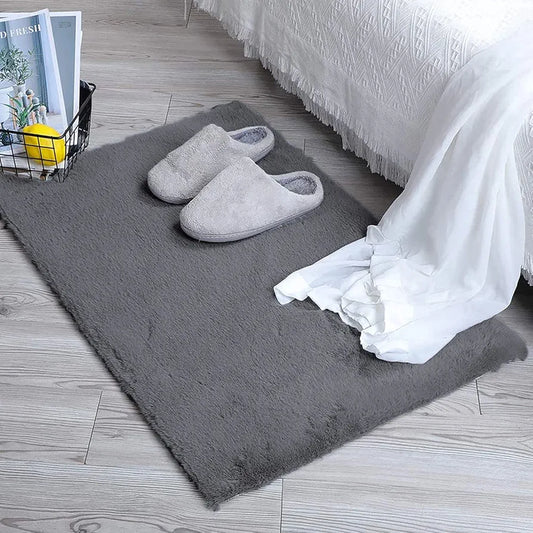 Luxe Home International Ruffle Bath Mat Rabbit Fur 1000 GSM Bathroom Door Rectangular Foot Mats 45X75 CmColour Grey