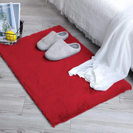 Luxe Home Ruffle Bath Mat Rabbit Fur 1000 GSM Bathroom Door Foot Mats 45 X 75 Cm Colour Maroon