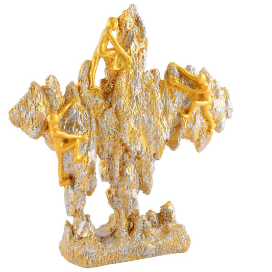 Luxurious Gold Finish Rock Climbing Sculpture with Trio Figures Inspirational Showpiece Representing Growth